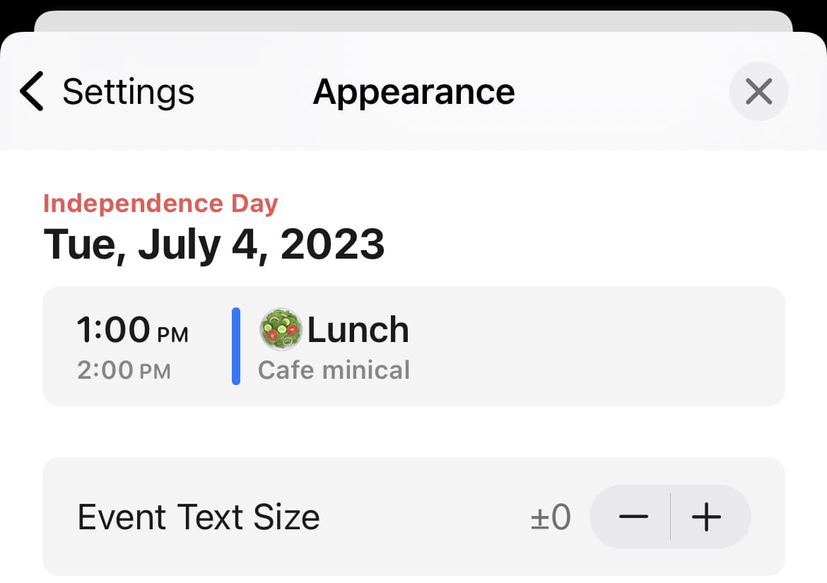 Změna velikosti textu událostí v měsíčním kalendáři (včetně widgetů)