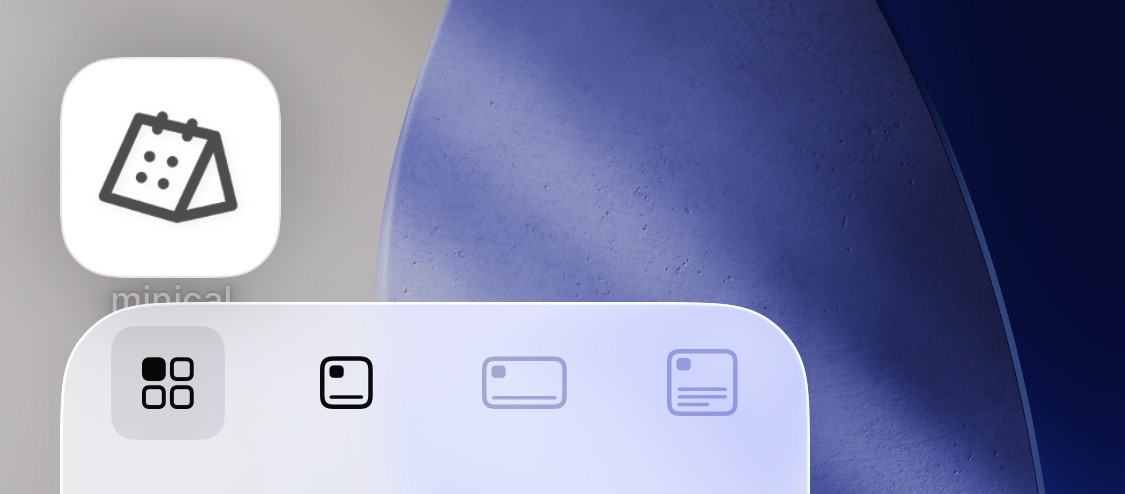 ホーム画面でminicalのアプリアイコンを長押ししたり、ウィジェットを長押しして別のサイズや種類に変更する機能はminicalでは非対応です。