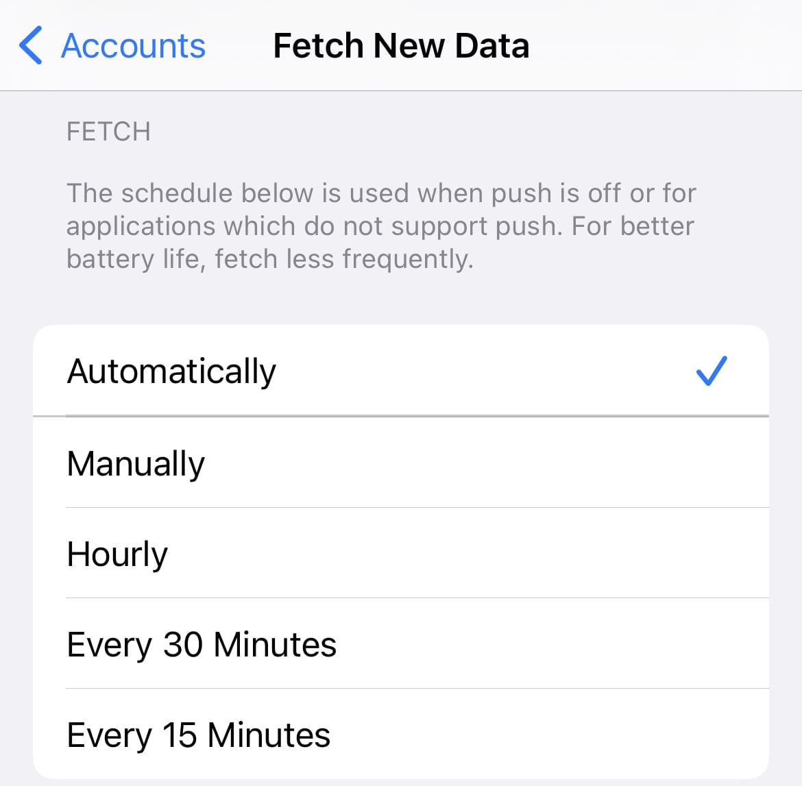 La batterie peut se vider plus vite qu'en mode fetch, mais la synchronisation est plus rapide.