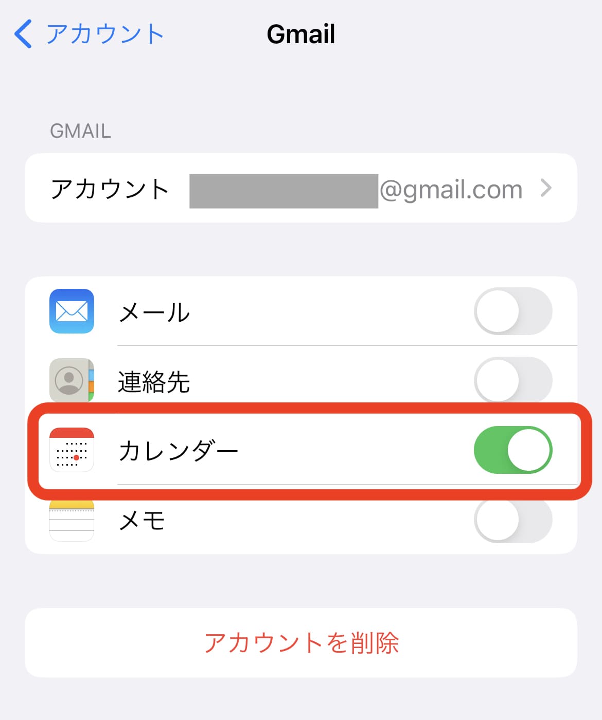 すでにアカウントが存在する場合は、各アカウントの設定画面で「カレンダー」がオンになっていることを確認してください。