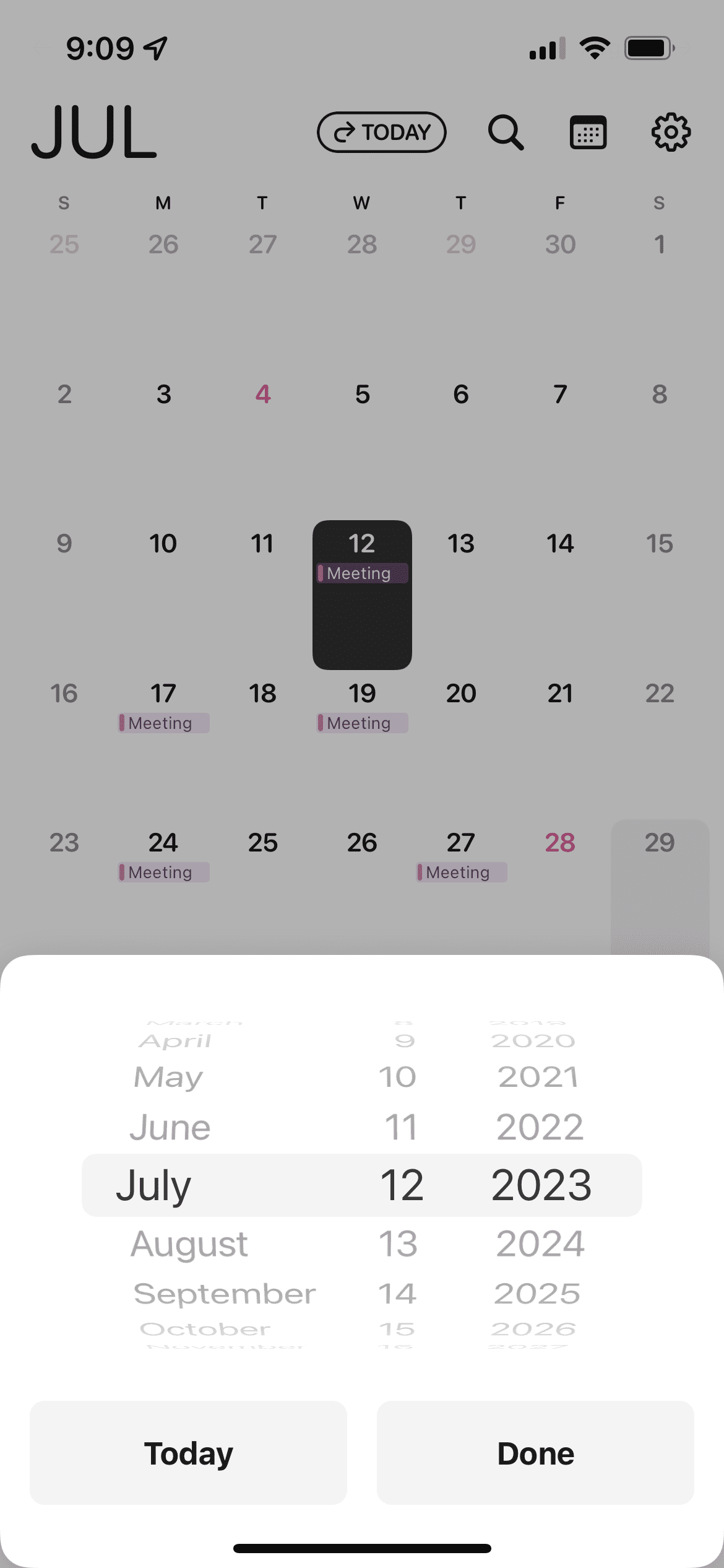Dengan mengetuk bulan pada kalender, Anda dapat mengubah tahun/bulan/tanggal yang ditampilkan dan berpindah tanggal dengan cepat.